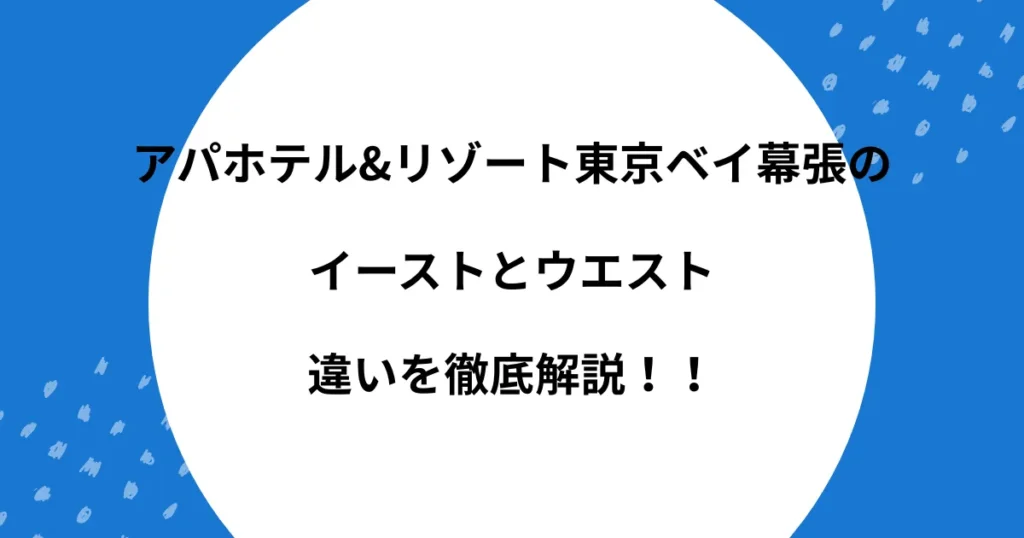 この記事ではアパホテル&リゾート東京ベイ幕張のイーストとウエストの違いを解説しています。 アパホテル&リゾート東京ベイ幕張のイーストとウエストの主な違いは6つです。 比較項目イーストウエスト① 価格シングル中心でリーズナブルツイン主体... -