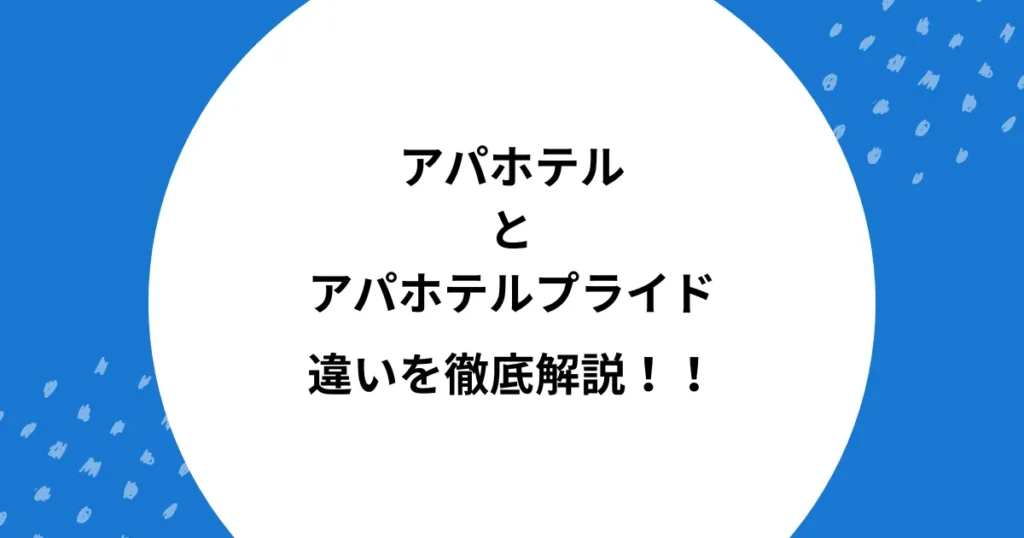 この記事ではアパホテルとアパホテルプライドの違いを解説しています。 アパホテルとアパホテルプライドの主な違いは7つです。 比較項目アパホテルアパホテルプライド① 価格平均5,000〜8,000円平均8,000〜15,000円② 客室・設備シンプルでコンパクト、機能... -